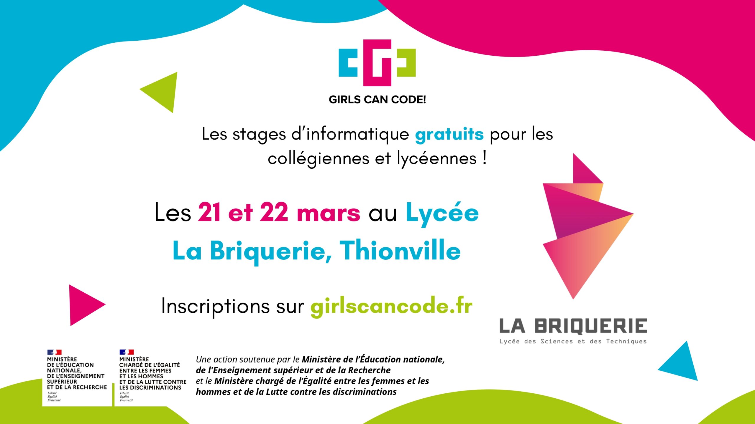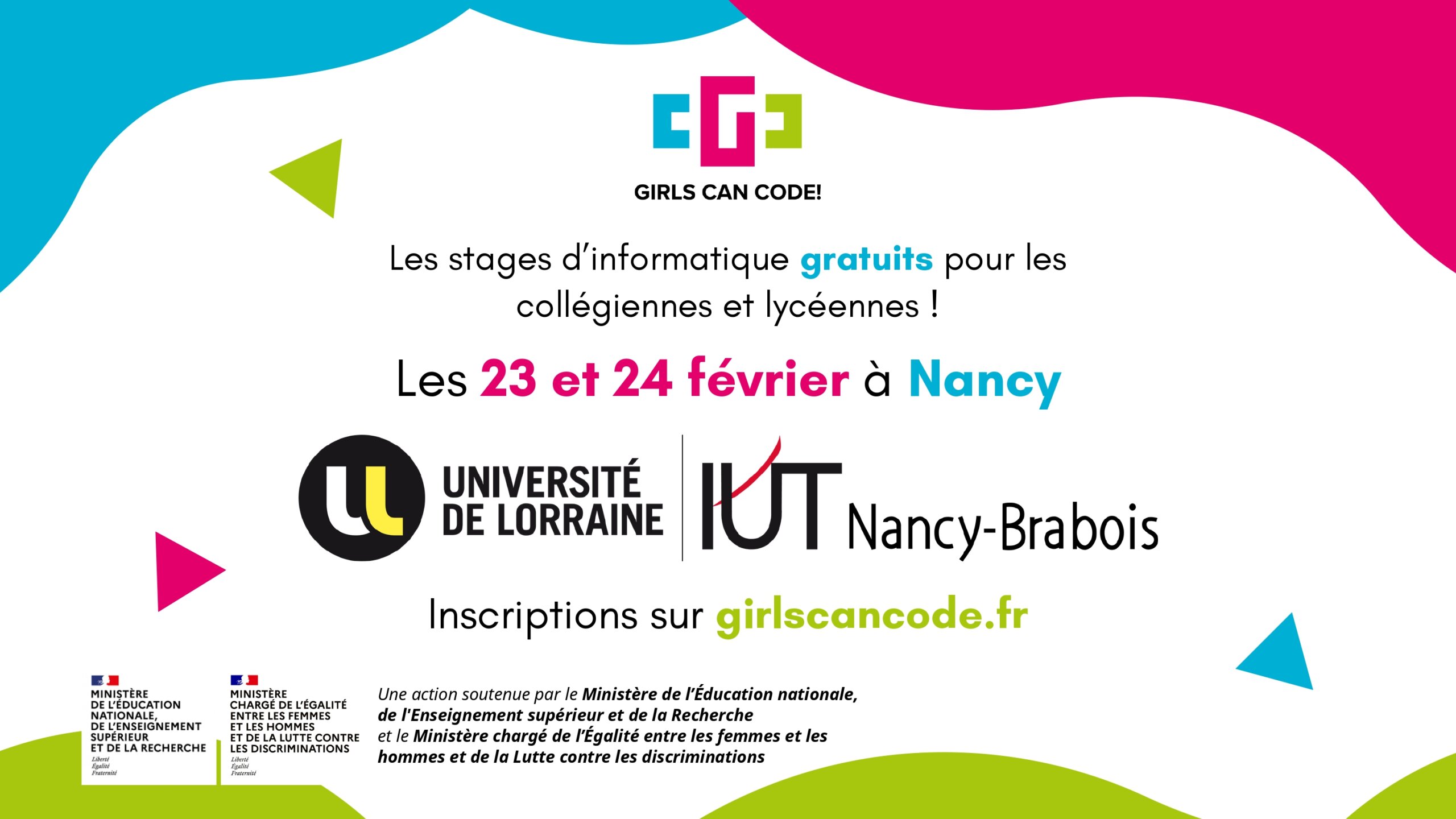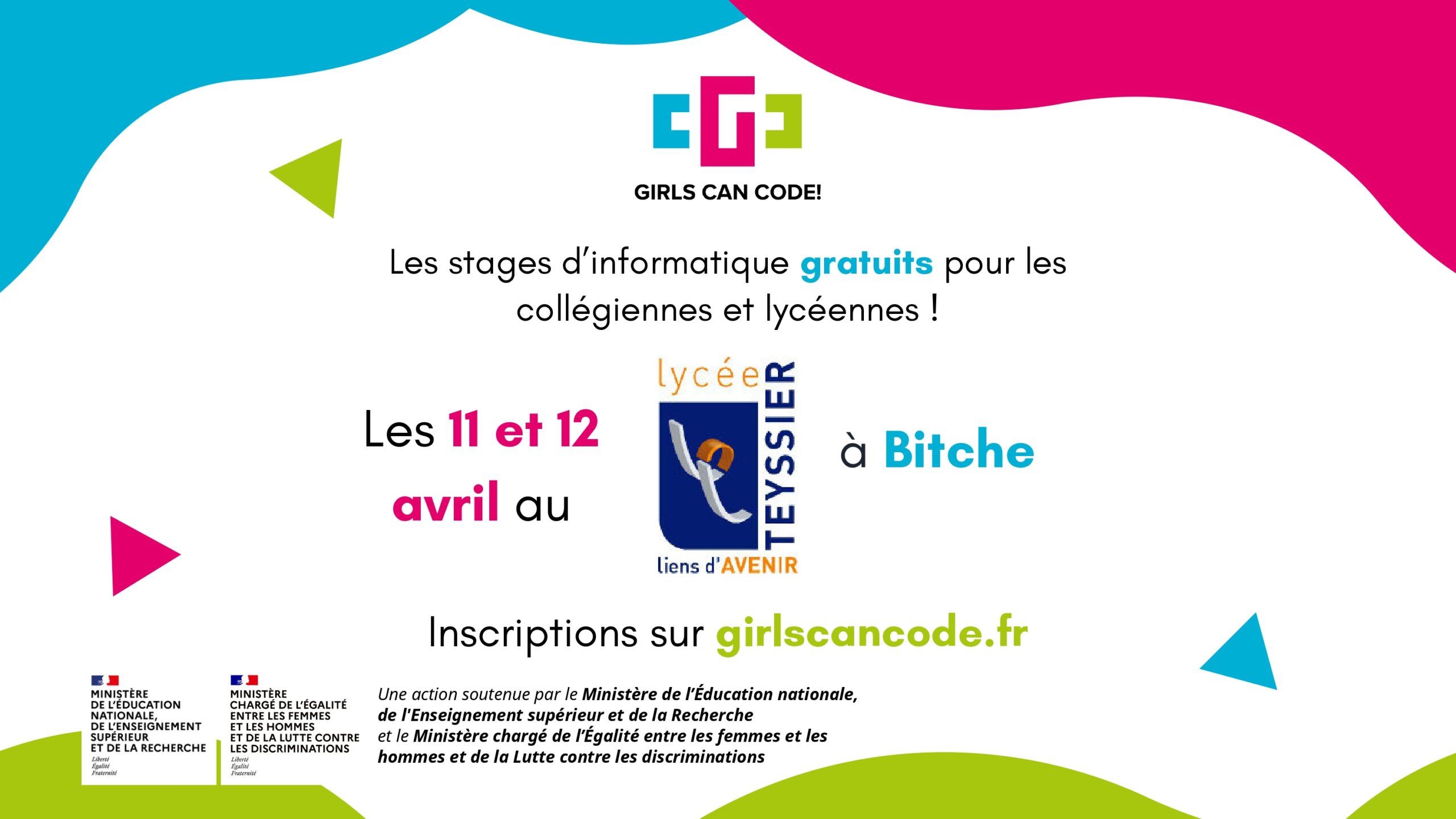 Soutenu par le ministère de l’Égalité entre les femmes et les hommes et de la Lutte contre les discriminations, ainsi que par les ministères de l’Éducation nationale, de l’Enseignement supérieur et de la Recherche, le programme Girls Can Code s’inscrit pleinement dans les priorités éducatives nationales et académiques en matière d’égalité et de formation au numérique.