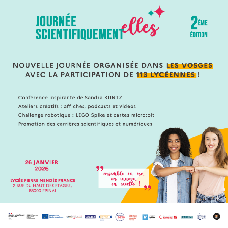 Une nouvelle édition de 𝐒𝐜𝐢𝐞𝐧𝐭𝐢𝐟𝐢𝐪𝐮𝐞𝐦𝐞𝐧𝐭 𝐄𝐥𝐥𝐞𝐬 se déroulera le 26 janvier au lycée Pierre Mendès-France d’Épinal : une journée entièrement dédiée à la promotion des vocations scientifiques au féminin.