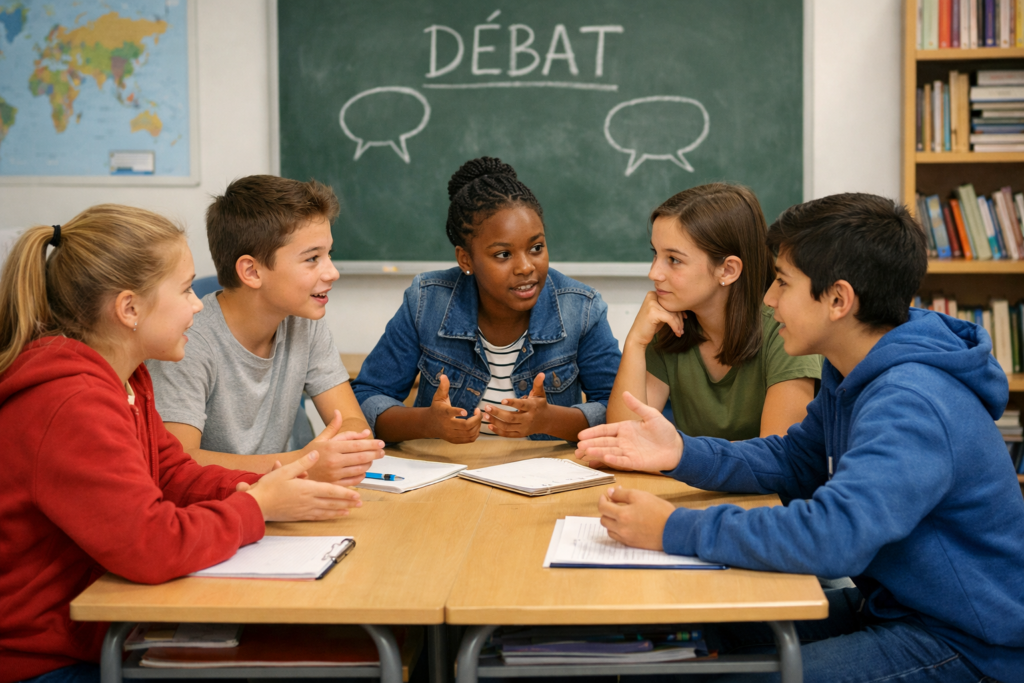 Ensuite un débat est organisé sous forme de jeu de rôle. Chaque équipe (élèves par équipe), grâce aux arguments provenant des échanges du forum, doit défendre sa position et être la plus convaincante possible par rapport au public.